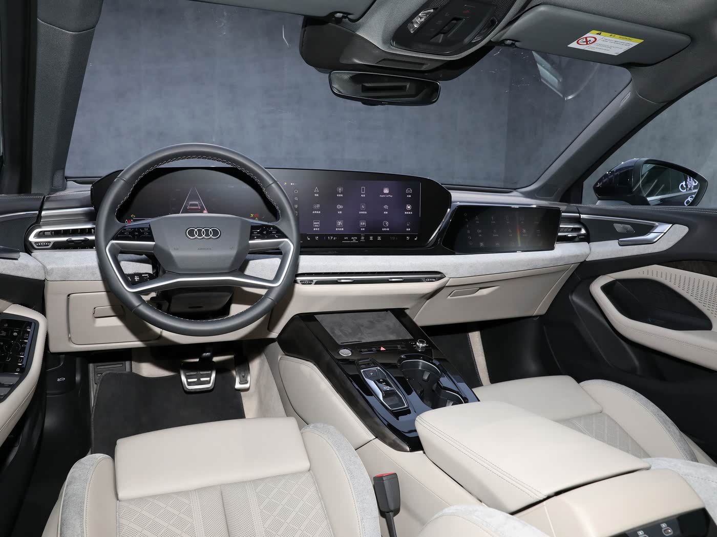 我们首先来看新车的外观设计方面,前脸采用奥迪家族标志性六边形进气格栅,内部为全黑蜂窝状结构,配合可发光四环LOGO,营造出极具未来感的视觉效果。矩阵式LED大灯支持8种动态光型,夜间辨识度极高,灯组内部集成双层点阵式光源,可根据路况自动调节照明范围。前保险杠两侧的导流槽设计,不仅优化了空气动力学性能,更强化了整车的运动气质。